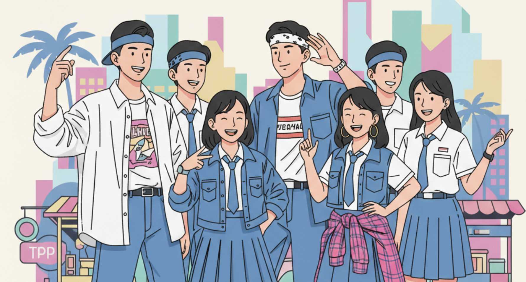 Jika kita berbicara tentang era 90-an, ingatan kita pasti tidak jauh dari serial Lupus, film Ada Apa Dengan Cinta? (meski rilis di awal 2000-an, gayanya sangat kental 90-an), atau tongkrongan di depan sekolah dengan pakaian yang khas. Gaya berpakaian anak muda tahun 90-an dipengaruhi penyanyi atau band ternama yang hits saat itu.