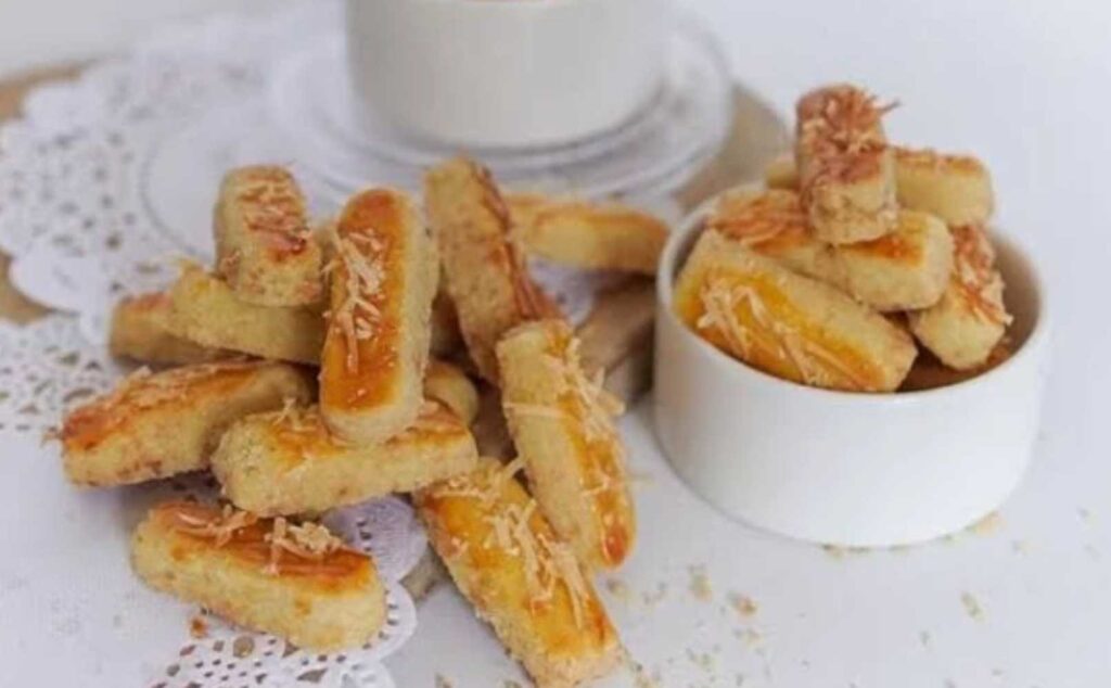Kue asin yang satu ini murni pengaruh dari selera lidah Eropa yang menyukai keju. Nama Kastengel berasal dari kata “Kaas” (keju) dan “Stengels” (batangan).