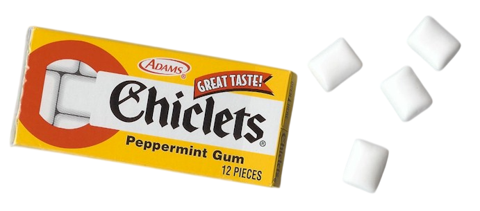 Satu lagi permen yang memiliki kenangan masi waktu kecil adalah Chiclets, Permen karet dengan kemasan kotak kuning cerah ini punya bentuk yang sangat khas: kotak kecil putih dengan lapisan gula (candy-coated) yang keras dan mengkilap.